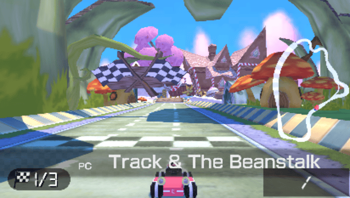 I am currently making a racing game. It has working enemy AI drivers, a mini-map, lap counter, item inventory (on the bottom right of the image), drifting system, and items.